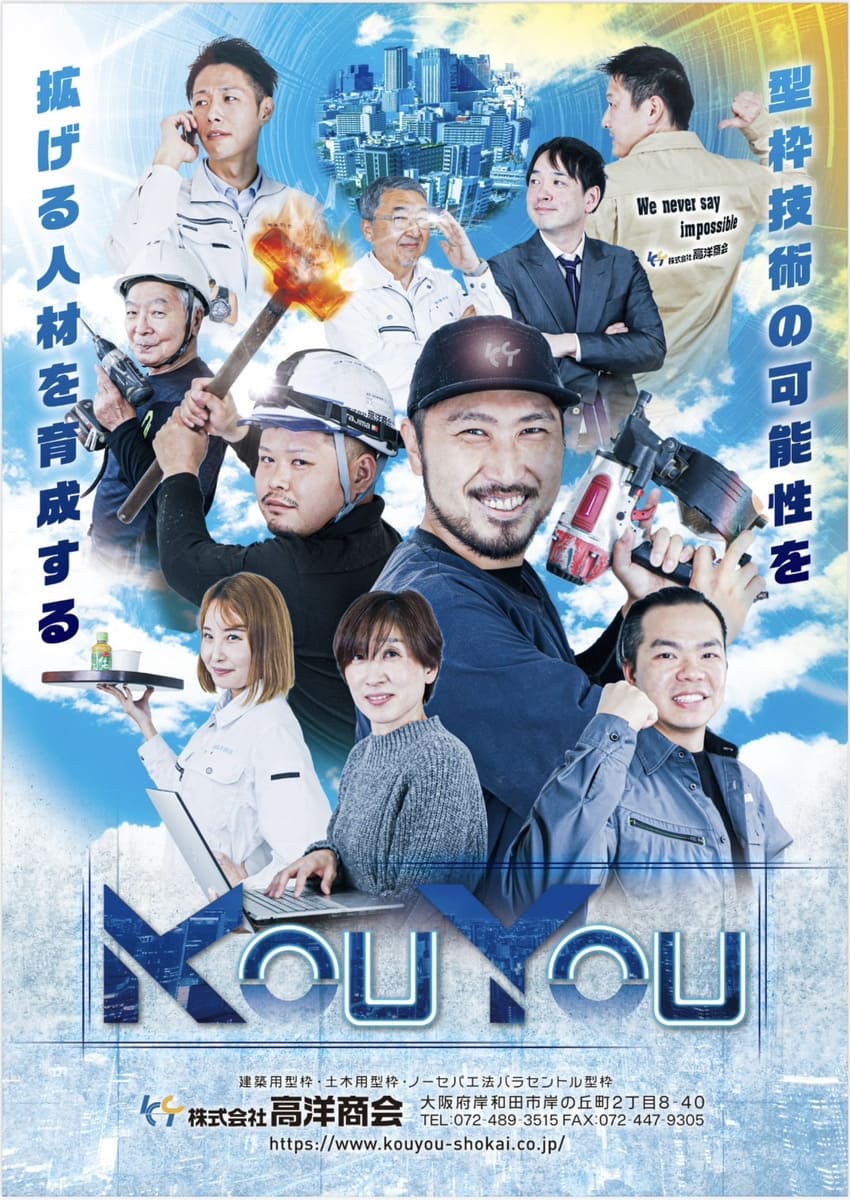 高洋商会は大阪岸和田市でコンクリート型枠、支保工の企画設計から製造そして施工までを手掛けるものづくり企業です。 木工場と鉄工場の両方を保有し、自社製品の組み立てまでを行うことが出来る、全国的にも珍し...