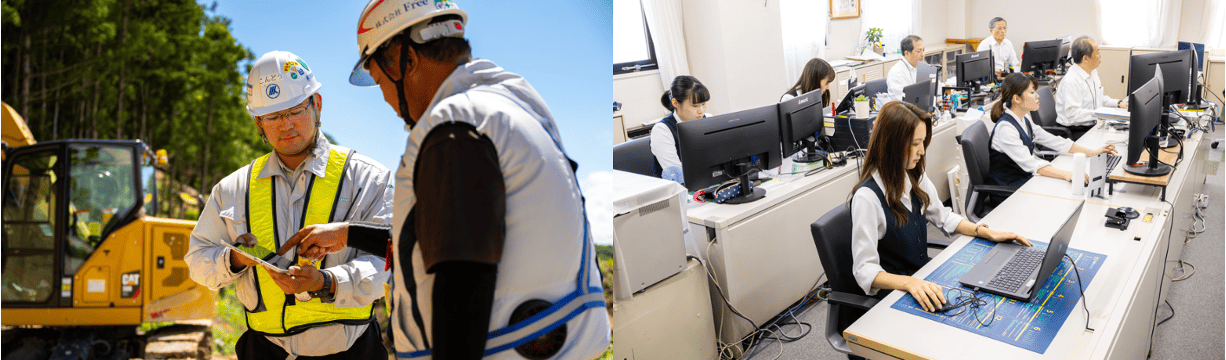 当社は、創立70年を迎えた総合土木工事会社です。 大型建設機械を用いて、ダム建設、敷地造成工事、道路工事の施工・管理を行います。情報通信技術(ICT)を活用した情報化施工に取り組み、生産性の向上を図って...