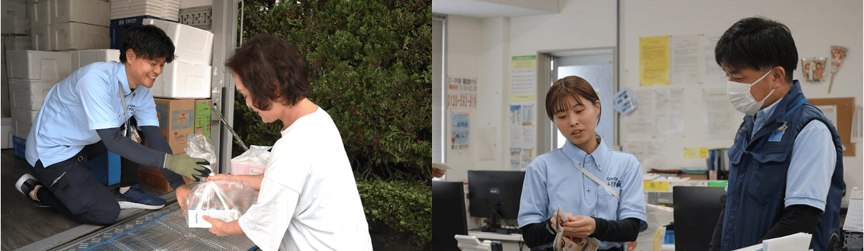 配送担当は、ご注文いただいた商品をお届けする中で組合員のみなさんとのコミュニケーションを大切にし、地域の方々に安心していただける丁寧な配達を心がけています。