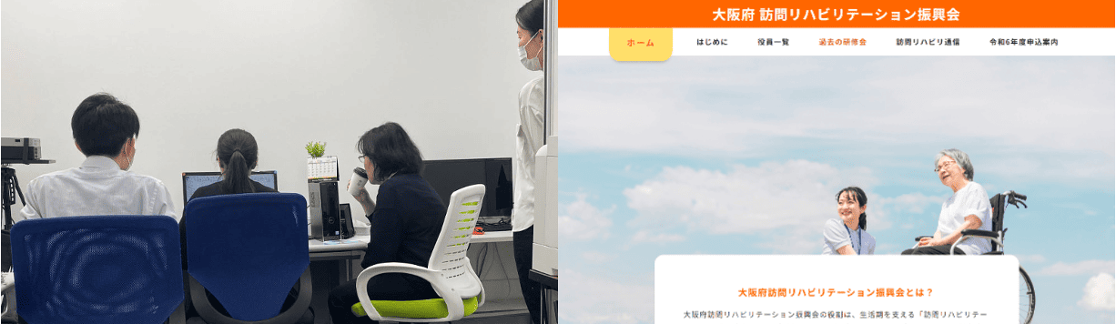 写真左:研修の様子 写真右:当社作成HP