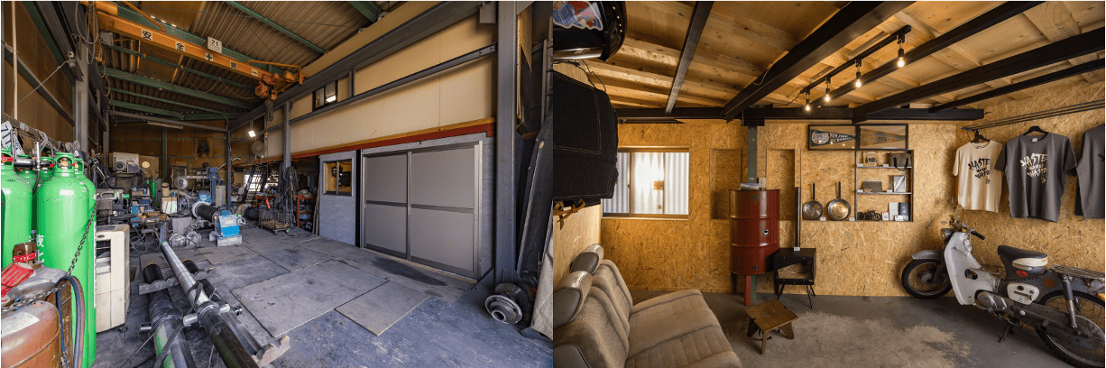 写真左:工場 写真右:ショールーム