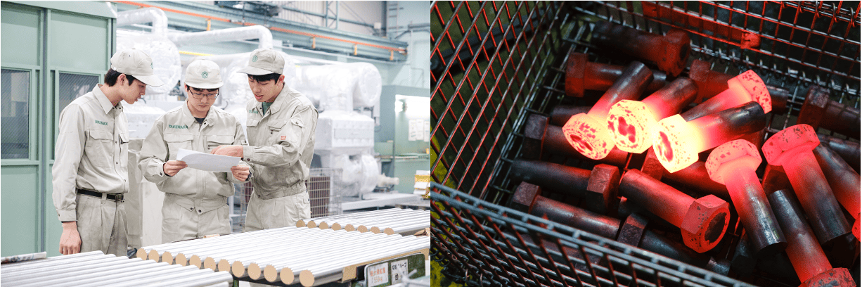 転造盤、熱間鍛造、旋盤などを用いたボルトの製造を行っていただきます。