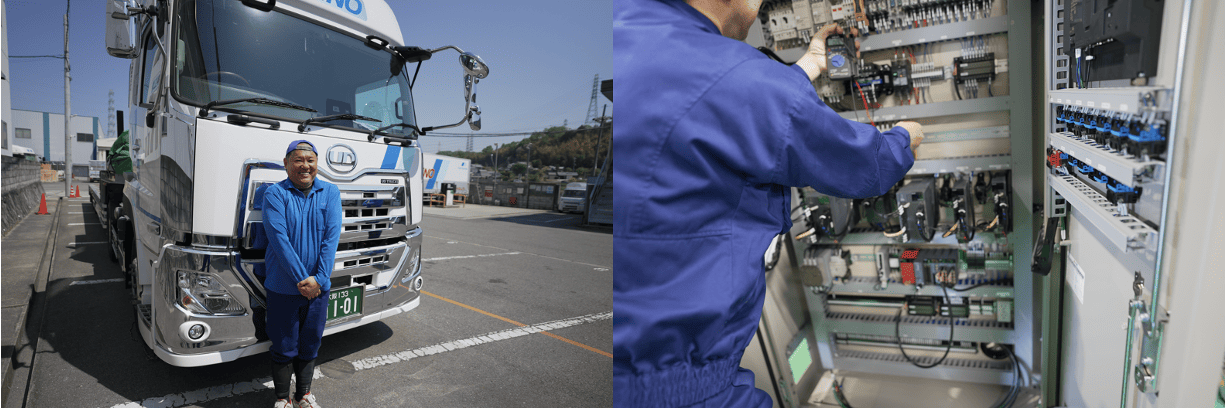私たちの会社は、輸送・倉庫・機械製造・インフラを支える仕事と幅広く事業を展開しており、未経験でも自分に合う仕事が見つかる環境です。