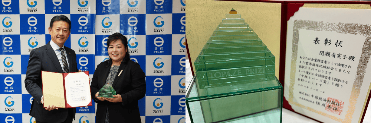写真:東海地方の優れた女性経営者を表彰する「第34回中経トパーズ賞」受賞の様子
