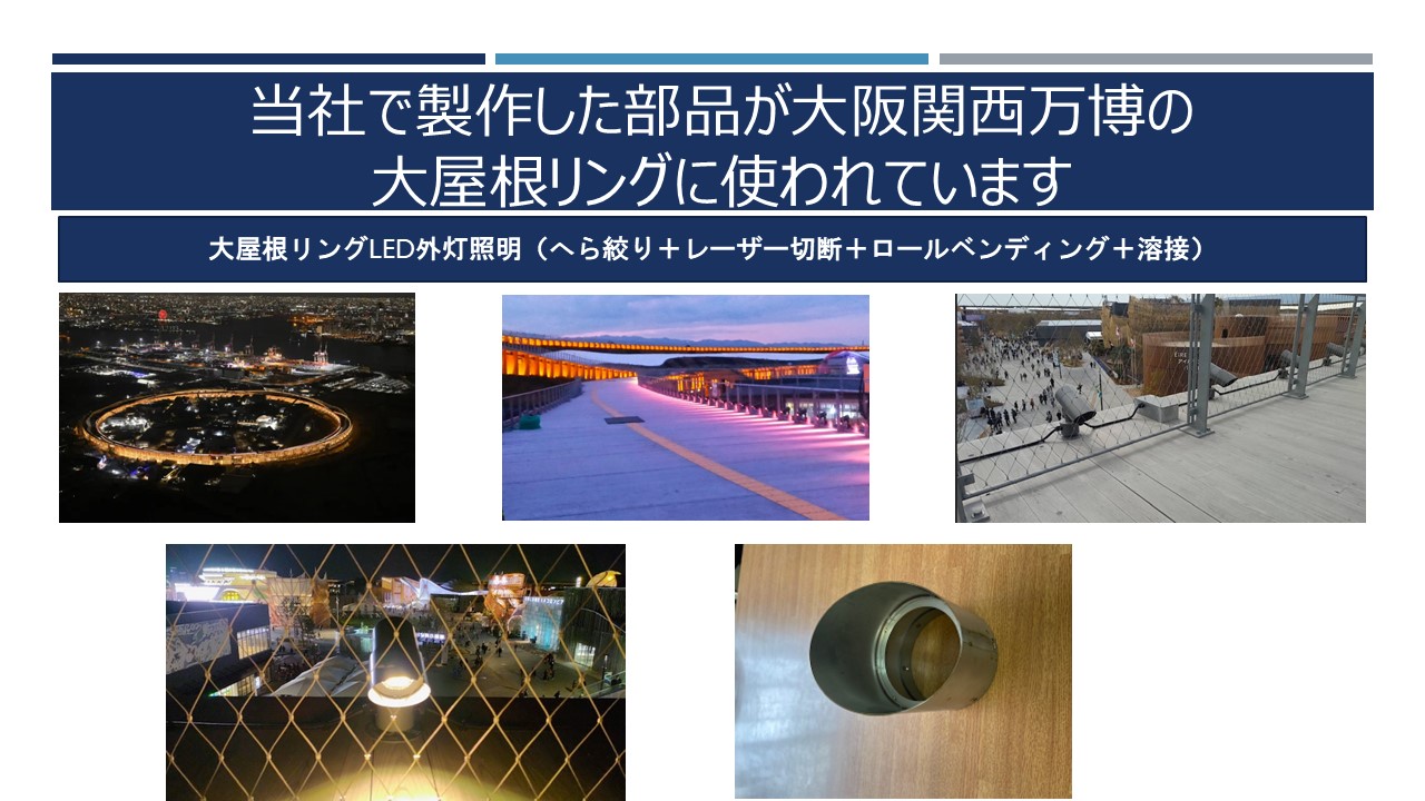 大阪・関西万博大屋根リング、グラングリーン大阪の照明にも採用された、金属塑性加工へら絞りを中心にレーザー切断、溶接加工、鈑金加工等、ものづくりの現場を体験・体感できる内容です。