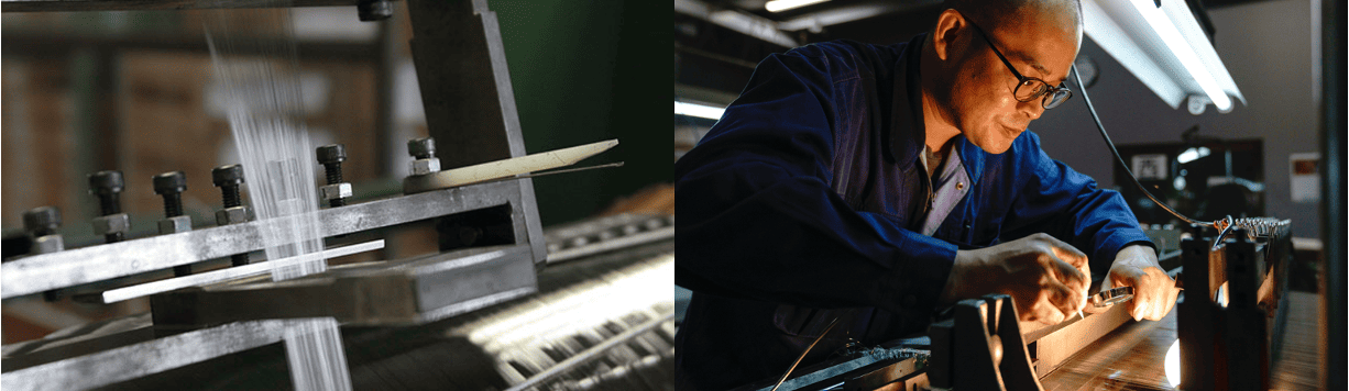 参加いただいた方には当社製造工場にて、髪の毛より細い極細線を使って金網を織る匠の技をご覧いただきます。