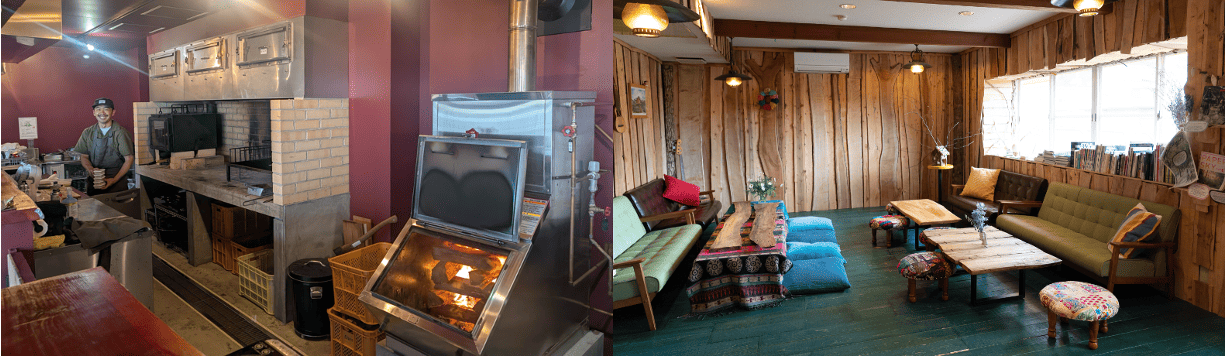 ガスを一切使用せず、「調理・給湯・暖房」に必要なすべての熱エネルギーを、これら自社製造の木質資源のみで賄う薪火レストラン「QUEBICO」の熱源として活用しています。