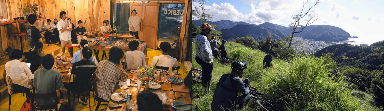 再生した約40kmに及ぶ古道を舞台としたMTBツアーや、海・森の資源を活かした体験コンテンツを多数自社運営しています。
