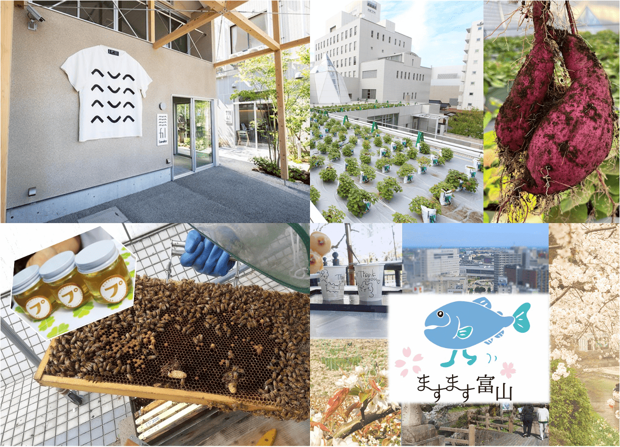 富山商業高校と協働して屋上でミツバチを飼育し、採蜜や観察を通じて生態系を学ぶ環境教育を実施。子どもたちと採蜜体験をするなど市民参加型の持続可能なまちづくりを推進しています。