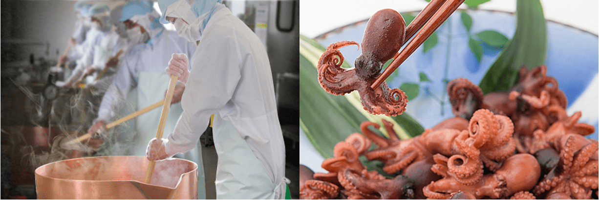 大型銅釜8基(日本でほぼ唯一)による品質の高い仕上がりとダシからこだわった自社開発のレシピ、TQM×HACCP+自社研究開発の食品安全文化成熟度診断評価モデルによる品質保証・品質管理・ESG体制により、時節ごとの様々なお客様の食のシーンと社会の期待に貢献しております。