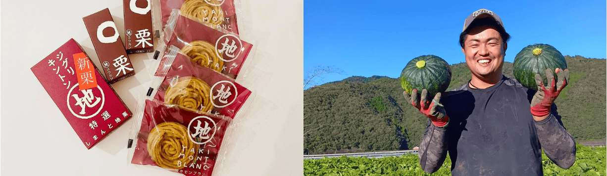 自社農業部門を立ち上げ、栗、芋、かぼちゃといった主要作物の生産を強化しています。四万十川流域の一次産業を支えるべく「しまんと流域organicプロジェクト」を設立し、環境に配慮した農業を推進。さらに、将来の安定供給を見据えた「しまんと地栗5,000本植樹プロジェクト」も展開しています。